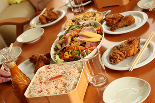 ケンタッキーのフライドチキン、メヒコの蟹ピラフを調達。
