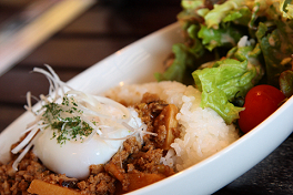 「筍と野菜の肉味噌のせ」は、春の限定メニュー。
