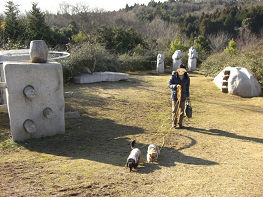 山の上にある、芝と石の遊具の公園で遊ぶ事に。