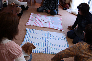 mi-miさん&まきちゃん&ノイスママさんが、着物作りの真最中。
