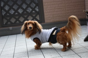 cocoが自分の庭以外で、尻尾を上げて歩くのは珍しい。