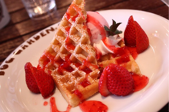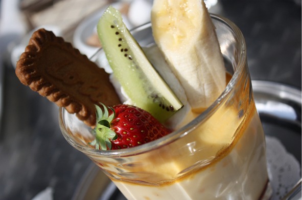 ホイップクリーム、シロップ、バナナ、苺を思い思いにトッピング。