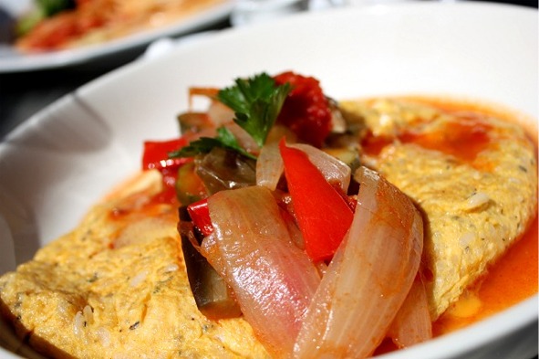 オムライスは、卵の中にご飯が混ぜてある始めての食感。