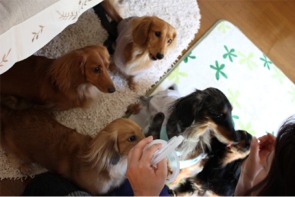 ワン達も挨拶代わりにおやつ。