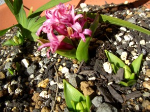 5年物のヒヤシンスが寒さの中開花。