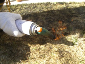 我家の芝は、火を点けるも火は走らず。