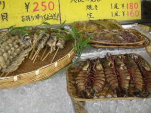 並んだ魚介の中から、好きな物を選び、その場で焼いてもらいます。