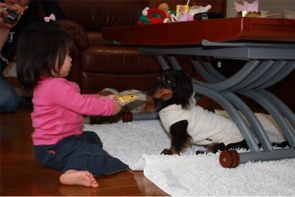 チョコちゃんは、無警戒態勢。 リク君はパパさんの膝の上。