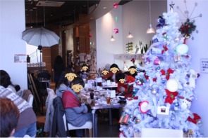 ツリーの脇で記念撮影したり、面白被り物で思い思いに撮影会。