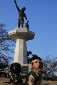 coco&wizとバルカン像を一緒にカメラにおさめたい。