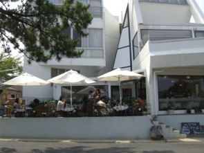 海が一望でき、海風が涼しいため、この時期でもテラス席が人気のカフェです。
