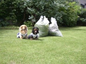 ワン達も、長旅の疲れを庭でリフレッシュ。