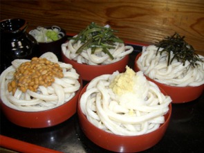 割子うどんは、かけ、山菜、おろし、納豆の4種類が味わえます。
