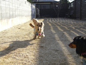 小型犬エリアは、パピヨンちゃんが1頭だけで、殆ど貸し切り状態。