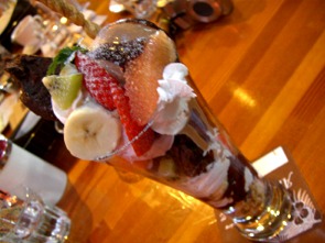 フルーツがいっぱい入り、チョコアイスと苺アイスが絡み合ったとても美味しいパフェです。