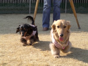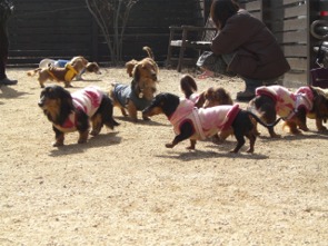 ドックランでワン達を遊ばせていると、続々と参加者の皆さんが到着し、ドックランはダックスだらけに。