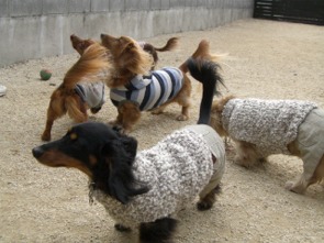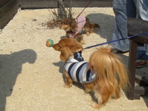 今日の午前中は、風も無く陽が暖かだったので、しばらくワン達の交流会です。