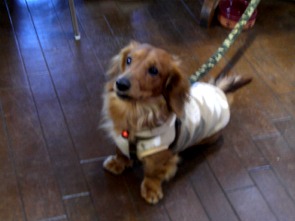 今日のcocoは、お散歩中ずっと車椅子のPieの膝の上。