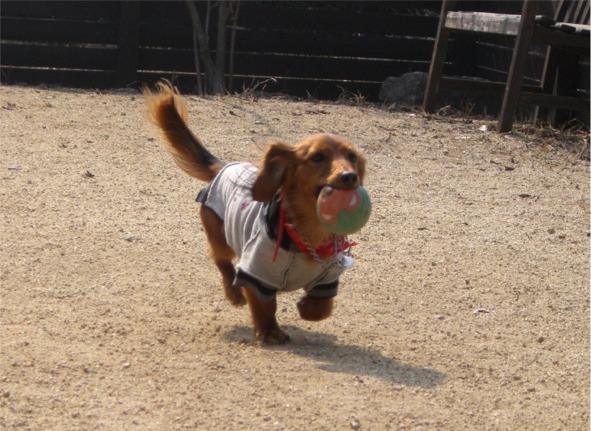 ボールに一直線に追いかける姿、追いつくと土煙を上げてキャッチする姿、ボールをくわえ誇らしげに戻って来る姿、どれも昔のまま。