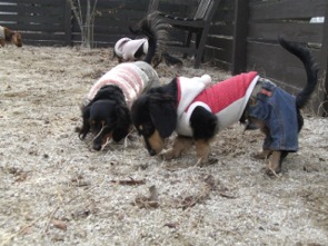 我家へ到着後、庭へ放すと4頭は思い思いに探索です。