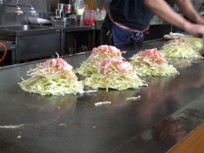 このお店は、自分で焼かず、調理場の大きな鉄板で豪快に焼いてくれます。