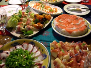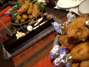 今日は、クリスマスと言う事もあり、いつもの大テーブルには乗り切れず、テーブル2つを料理が埋め尽くしました。