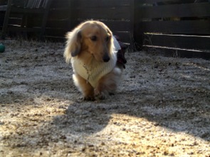 でも、お家の中だけでは可哀想なので、寒空の下、庭へGO!