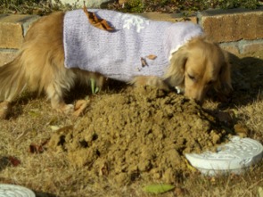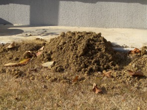 今日も、庭に出てみると、大きなモグラ塚が点在していました。