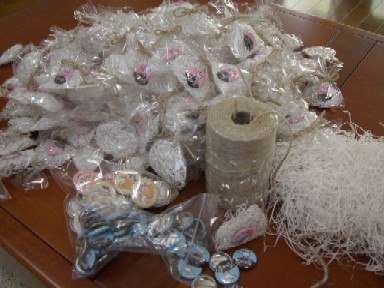 そして、次の作業が、大量の缶バッチの袋詰め作業。