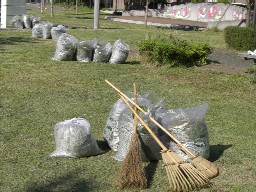 イベント会場となる「さわやかセンター」隣の広場の草刈回収です。