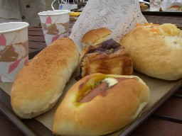 ワンコOKのテラス席で、ワン友さん達と楽しいお喋りをしながら、パンを頬張る。