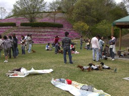残念ながら芝生ゾーン中央部には、来週から始まる陶器市の仮設物があり、端の方に集合。