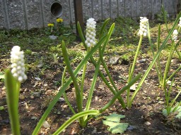 また、白・紫のムスカリも活き良く咲いていました。