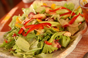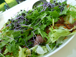 貝三昧の後は、にんにく醤油のステーキサラダ&焼きおにぎり&