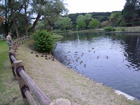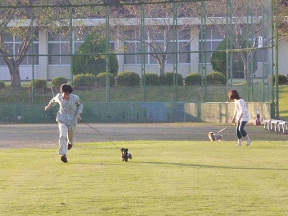 この公園は、いつ行ってもワンのお散歩をする人がいっぱい。