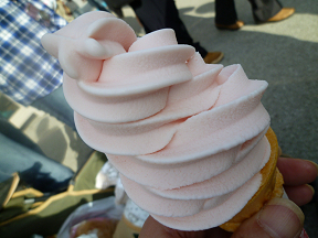 ワン友さんからラズベリーの赤色とPieが情報を得ていたが、食べたらライチ味?