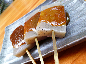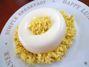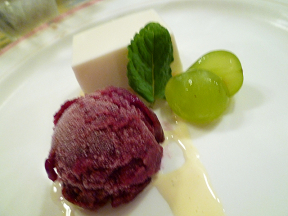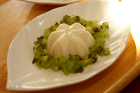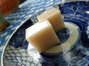 食後は、蕎麦を寒天で甘く固めたデザート。