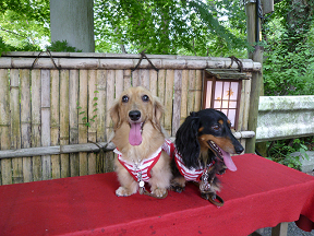館内は、ワンNGなのでお庭の芝生ゾーンでリラックス。
