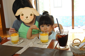 家へ戻ると、ミコが美味しいお茶とケーキ&プリンを用意してくれました。