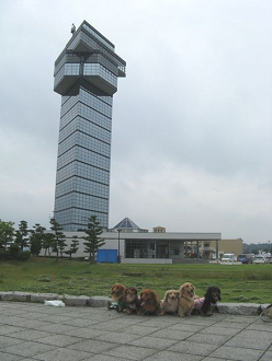 海沿いを3ワン並んでお散歩するはずが、6時にて閉園。