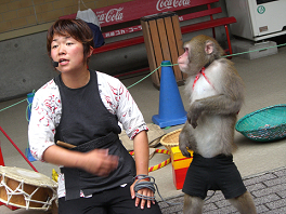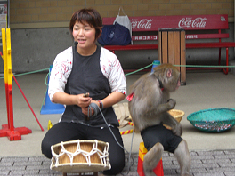 猿回し師・村崎太郎さんのお弟子さんの芸がスタートするところ。