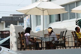 海の見える「メイプルカフェ」のテラス席で待ち合わせ&ランチです。