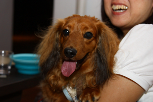 ストロボを正面にしてしまい、ワンの目が光ってしまった。