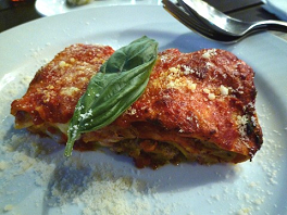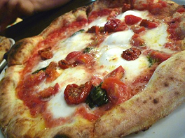 Pieが水牛チーズのピザ、私は手長海老のパスタ。