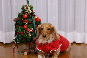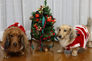 お手製のクリスマス服、ファーがお洒落な花ちゃん&mi-miさん