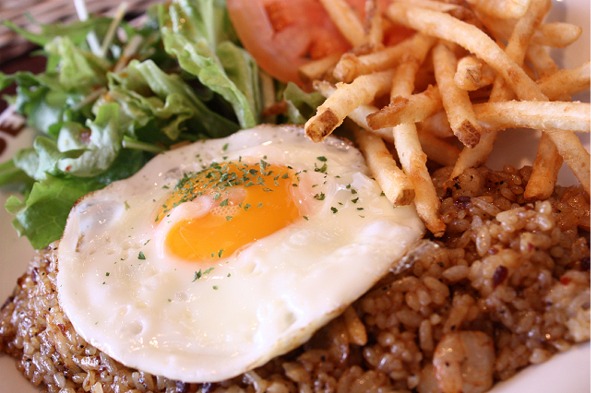 オムライスは、卵の中にご飯が混ぜてある始めての食感。