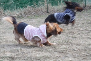 冷たい強風が吹く中、ココちゃんとタンゴ君が元気に追い駆けっこ。