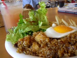 Pieはナシゴレンとグアバジュース、私はミートパスタとコーヒーをオーダーしました。