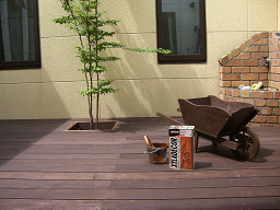 先日お掃除はしておいたので、キシラデコートを塗ってもらいました~